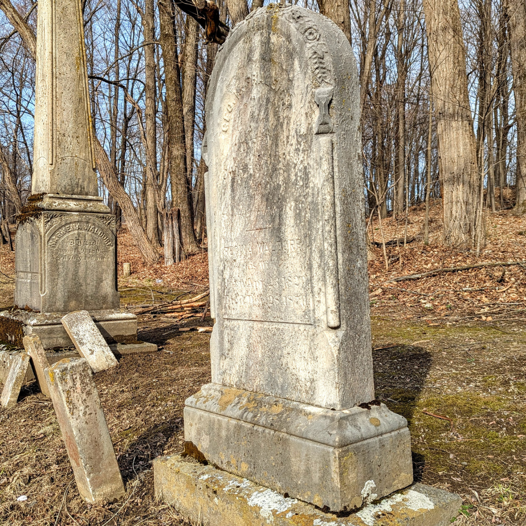 George W. Fraleigh was born June 7, 1816, to Peter P. Fraleigh and his second wife Lana Coon. The Commemorative Biographical Record of Dutchess County states that...“In the old training days George was a member of a company of cavalry; in early life held a number of township offices, and he was a stalwart Republican in politics.” On November 28, 1838, he married Regina Waldorf, daughter of William Waldorf and Ann Martin who are also buried in this cemetery. Together they had five children–Peter W. (1840–1881 married Helen Crandall), John A. (1841–1914 married Lucy Irene Curtis), Monroe (1843–1921 married Gertrude Martin), Rosalie M. (also known as “Aunt Rose” and “Rosella” 1848–1911), and Philip E. (1851–1939 married Phoebe K. Conklin). Rosalie and John and his wife are also buried in this cemetery. Peter and John would continue the farming tradition, while Philip and Monroe operated a hardware store together. Aunt Rose never married and succumbed to tuberculosis at 63 years of age. Like their father, their mother Regina also lived only to age 50, passing away in 1870.